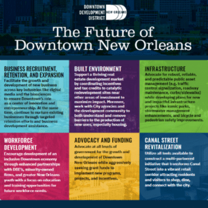 In March, Downtown Development District released a new Economic Development Strategy identifying both broad strategies and specific initiatives to improve the local economy Downtown. As a long-range planning document, this new strategy will be used to develop new programs, influence policy decisions, and ensure consistent progress toward establishing a strong urban core in the heart of the Crescent City.