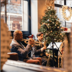 A lobby pop-up will feature a variety of local vendors, including homemade candlemakers, cosmetics, vintage clothiers, and hat makers. To complement the shopping experience, guests can enjoy live music performances, including the Golden Compass Trio featuring special guest Herlin Riley, a madrigal group led by Dr. Meg Frazier, and French Quarter caroling led by Pete Addicks and the NOLA Hummingbirds.