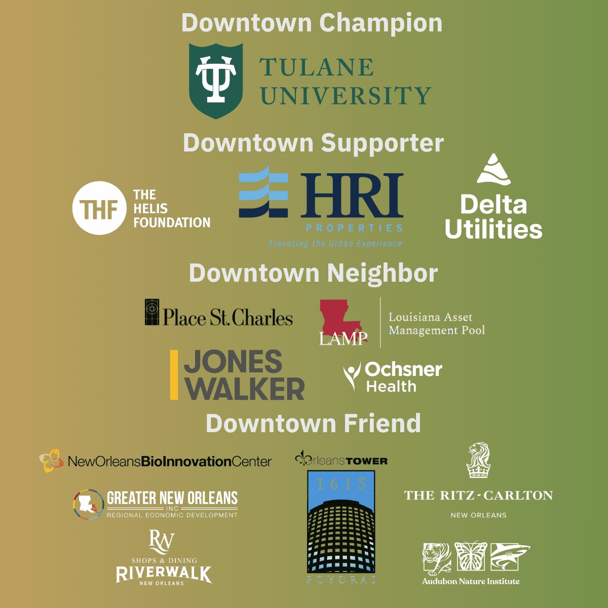 The Downtown Development District extends its sincere appreciation to the organizations that make the 2025 Downtown NOLA Awards possible. Their investment in Downtown’s continued growth reflects the collaborative spirit that defines New Orleans.